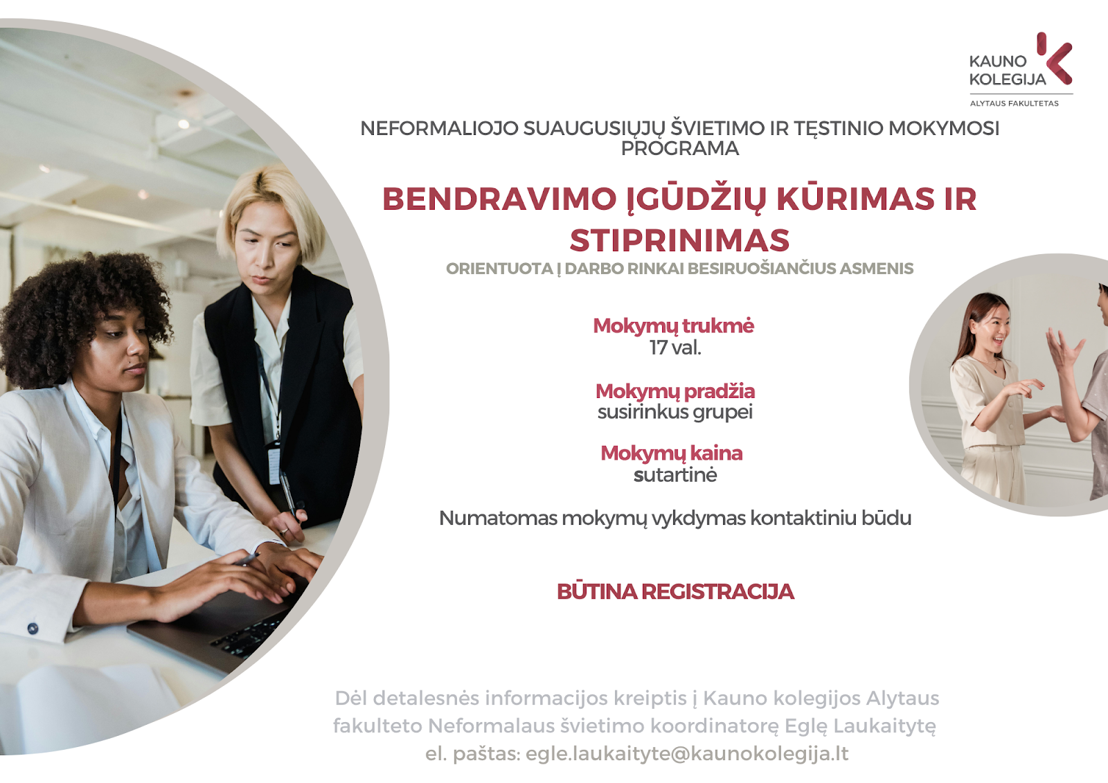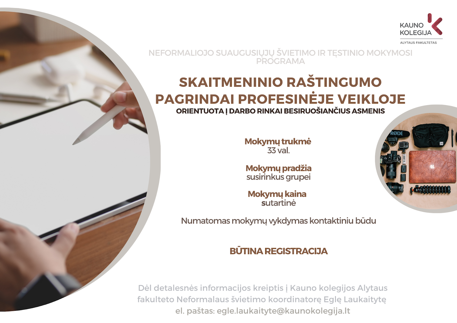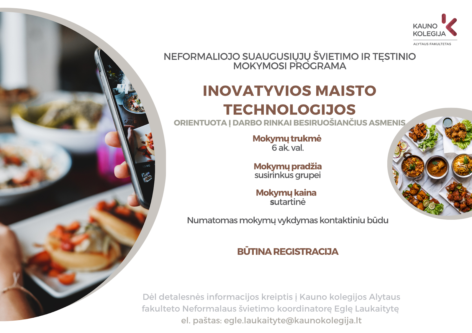 Būtina registracija el. paštu egle.laukaityte@kaunokolegija.lt arba tel. +37068388706.