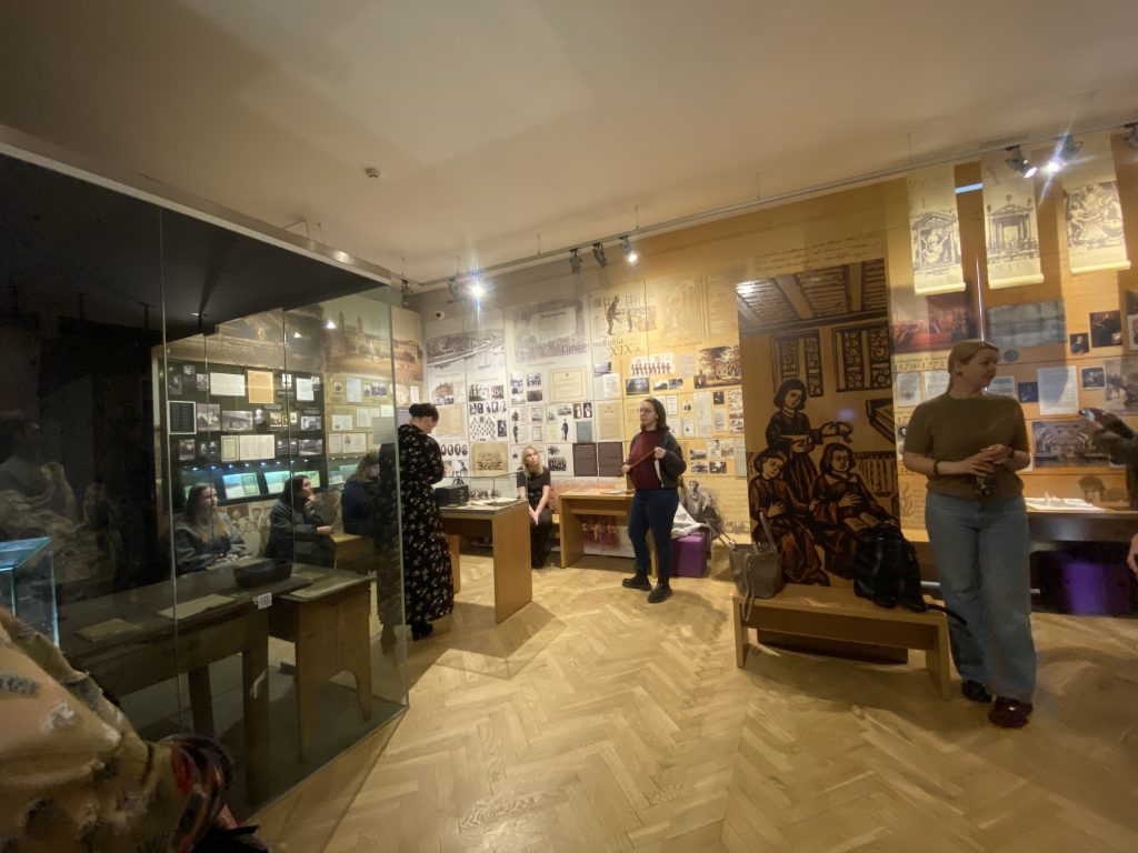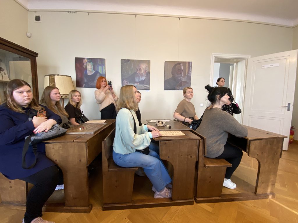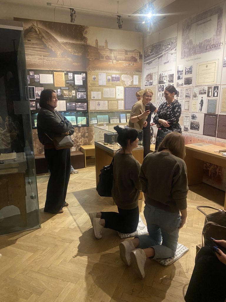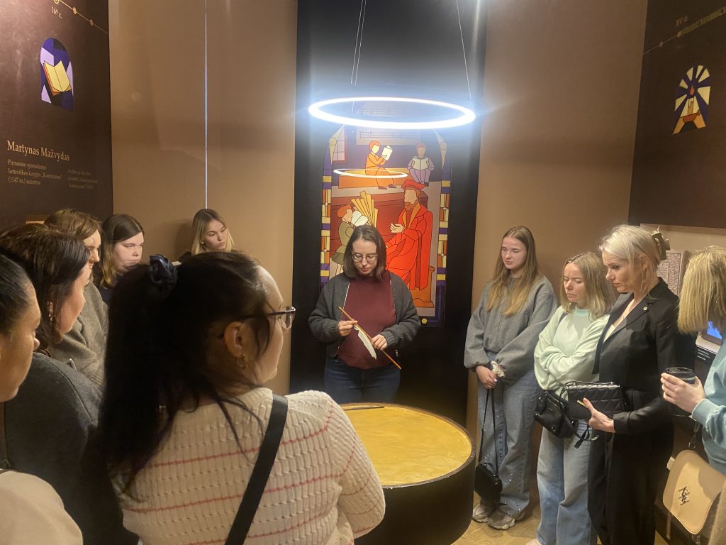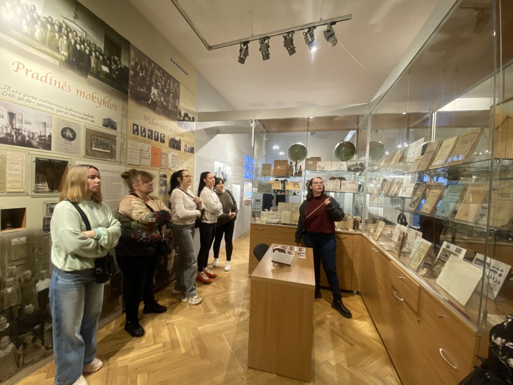 Vinco Ruzgo memorialiniame kabinete jos susipažino su pedagogo veikla, apžiūrėjo asmeninius daiktus, dokumentus bei nuotraukas. Ekspozicijoje „Iš amžių glūdumos į mus“ studentės keliavo per Lietuvos švietimo istoriją – nuo XIV a. iki šių dienų: nuo pirmųjų mokyklų, slaptųjų daraktorinių pamokų iki modernios švietimo sistemos kūrimo. Jos išgirdo apie Vilniaus universiteto, jėzuitų ir tautinio atgimimo veikėjų svarbą švietimui, susipažino su nepriklausomos Lietuvos mokyklų kūrimusi bei sudėtingais okupacijų laikotarpiais.