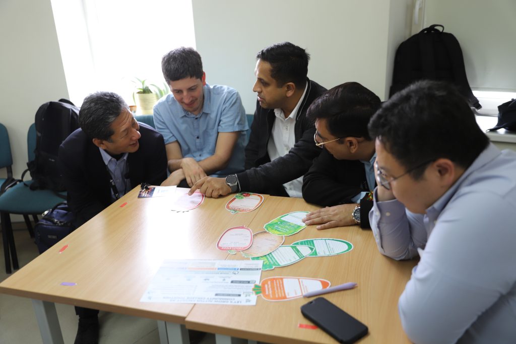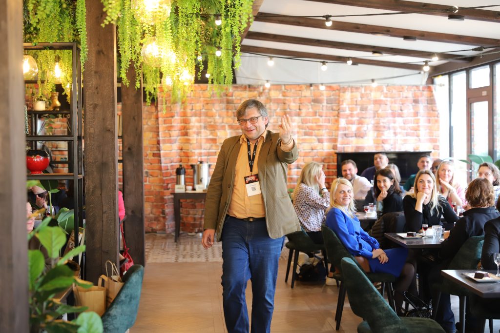 Bendrakūros sesijoje „Maistas ir inovacijos“ dalyviai analizavo pateiktą iššūkį, degustavo tradicinius lietuviškus produktus – šaltibarščius, grikinę babką – ir kūrė sprendimus, jungiančius gastronomiją, duomenis bei inovacijas.
