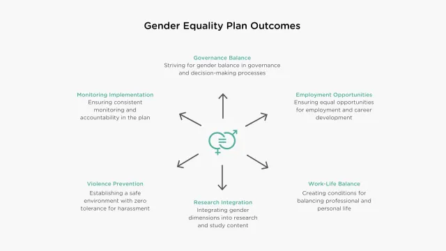 The aim of the plan is to promote institutional cultural change in the field of gender equality by establishing a sustainable, data-driven equality policy, strengthening the integration of gender aspects into studies and applied research and artistic activities, reducing structural inequality and hidden bias in staff recruitment, career development, and decision-making, increasing the visibility of underrepresented groups, introducing effective measures for work-life balance, ensuring the implementation of the zero-tolerance principle towards violence and harassment, and guaranteeing consistent monitoring and accountability in the implementation of the Gender Equality Plan.