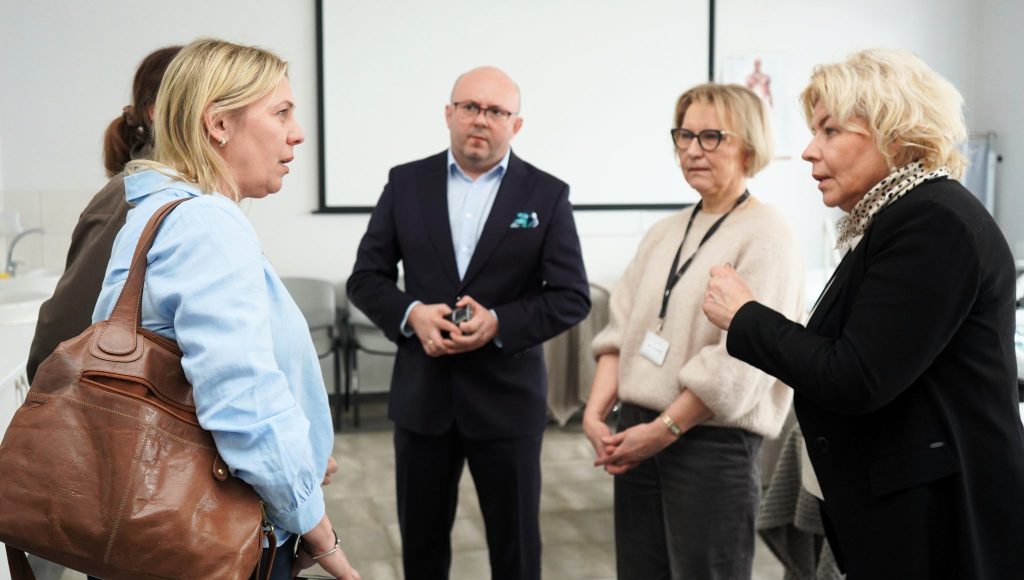 The delegation was also given a guided tour of the study facilities within the Departments of Cosmetology and Nursing. The guests were introduced to the auditoriums, practical training rooms, laboratories, and the equipment in use. Discussions were also held on the organisation of practical training and opportunities for developing students’ competences.