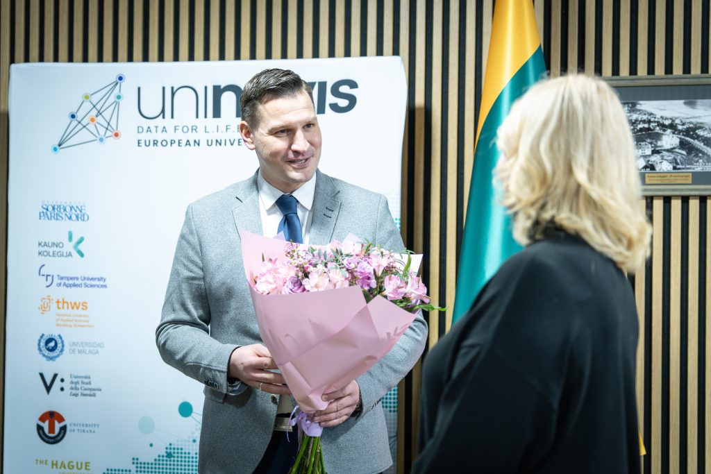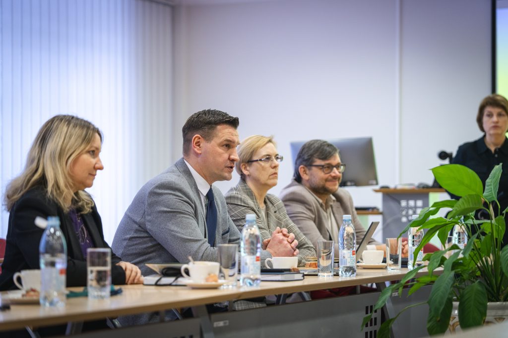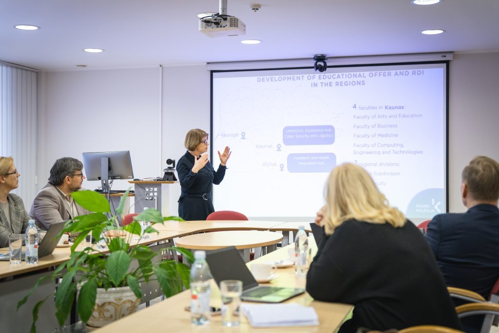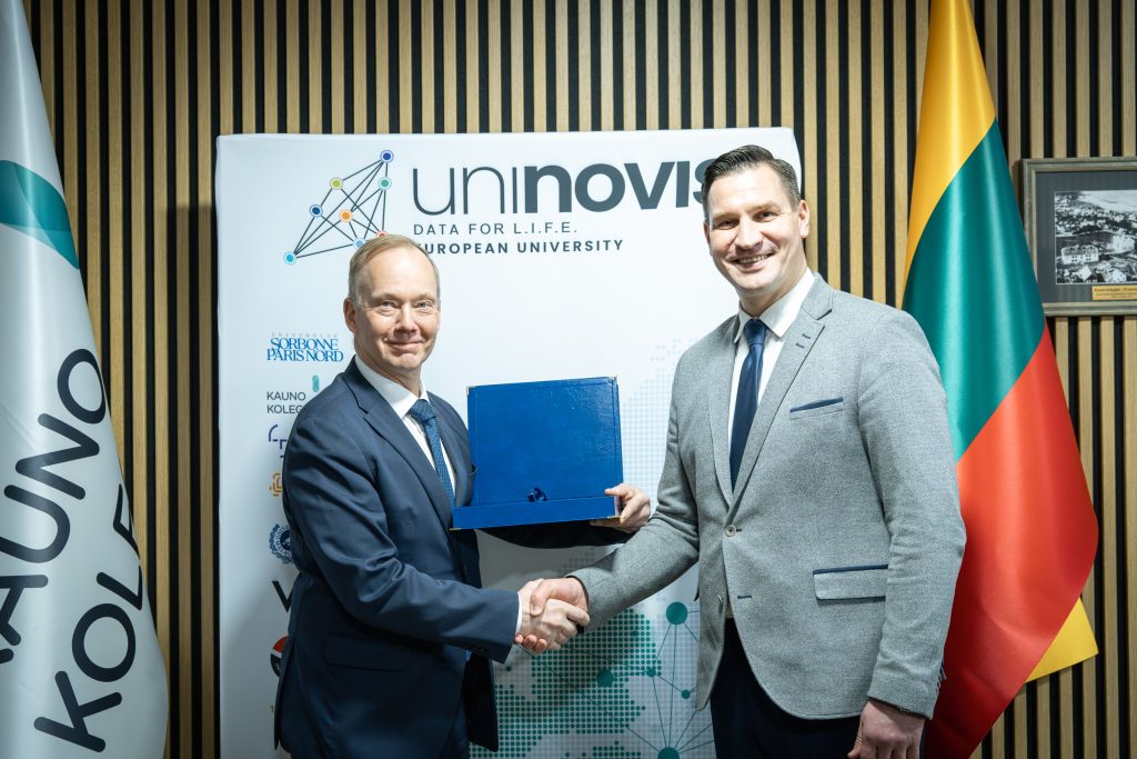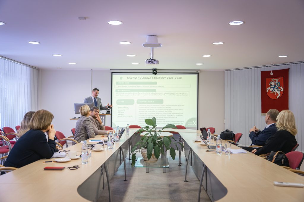 The delegation was led by TAMK President Dr Mika Hannula and included Tiina Koskiranta, Head of Study Development and UNINOVIS Activity Coordinator. During the visit, Kauno kolegija presented its 2026–2030 strategy, outlining the institution’s key development priorities, strategic objectives, and the principal challenges ahead.