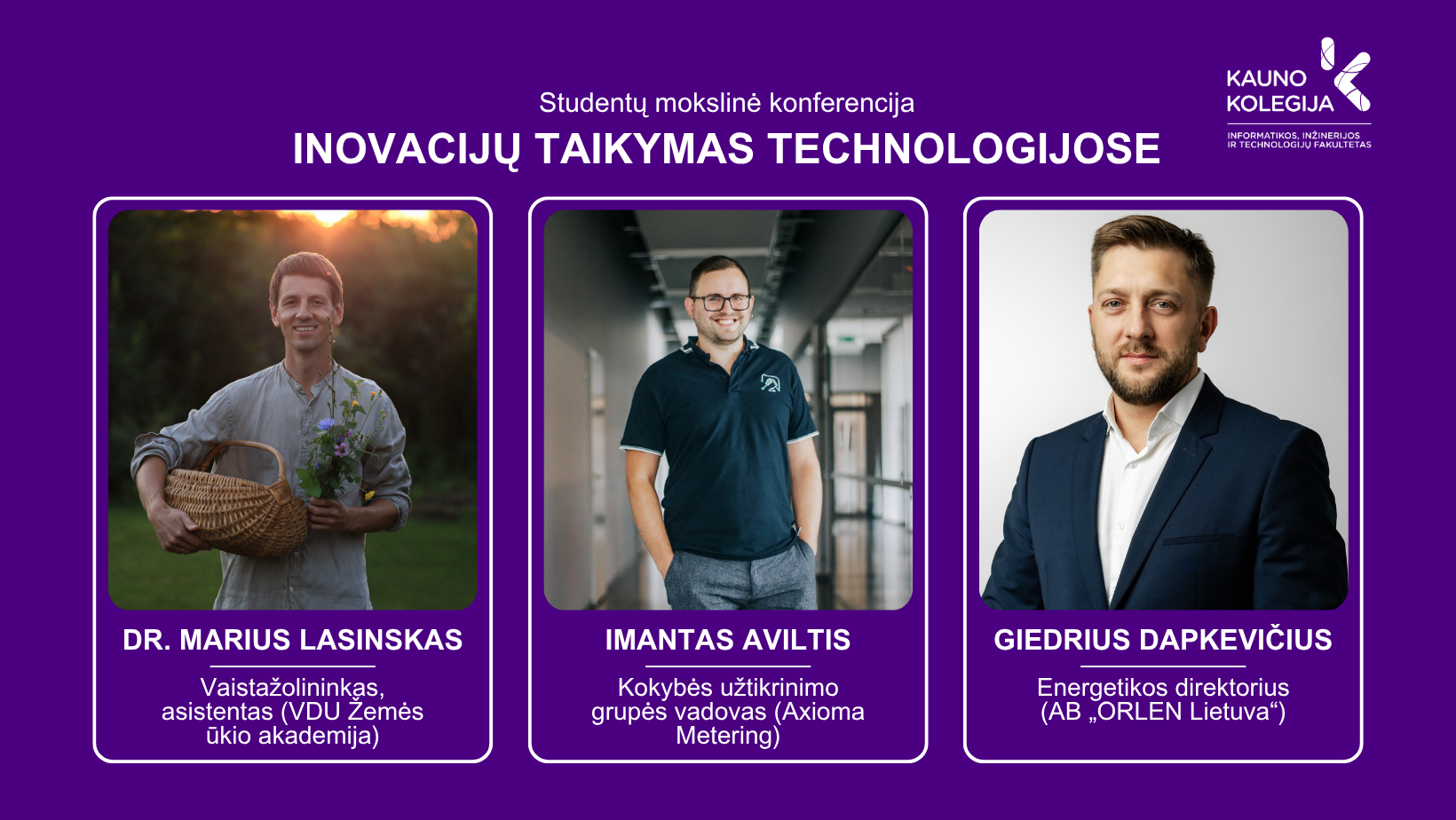 Svarbią konferencijos dalį sudaro kviestiniai pranešėjai, kurie atskleidžia skirtingas inovacijų kryptis. Energetikos sektorių pristatys Giedrius Dapkevičius, einantis energetikos direktoriaus pareigas bendrovėje ORLEN Lietuva. Jo pranešimas „ORLEN Lietuva energetinės transformacijos kontekste“ orientuotas į vieną aktualiausių šiandienos temų – energetikos sektoriaus transformaciją. Bus aptariama, kaip įmonė keičia savo veiklos modelį, kokius sprendimus diegia siekdama tvarumo, kokią vietą mato ateities energetikos sistemoje ir kokių kompetencijų reikės šios srities specialistams.