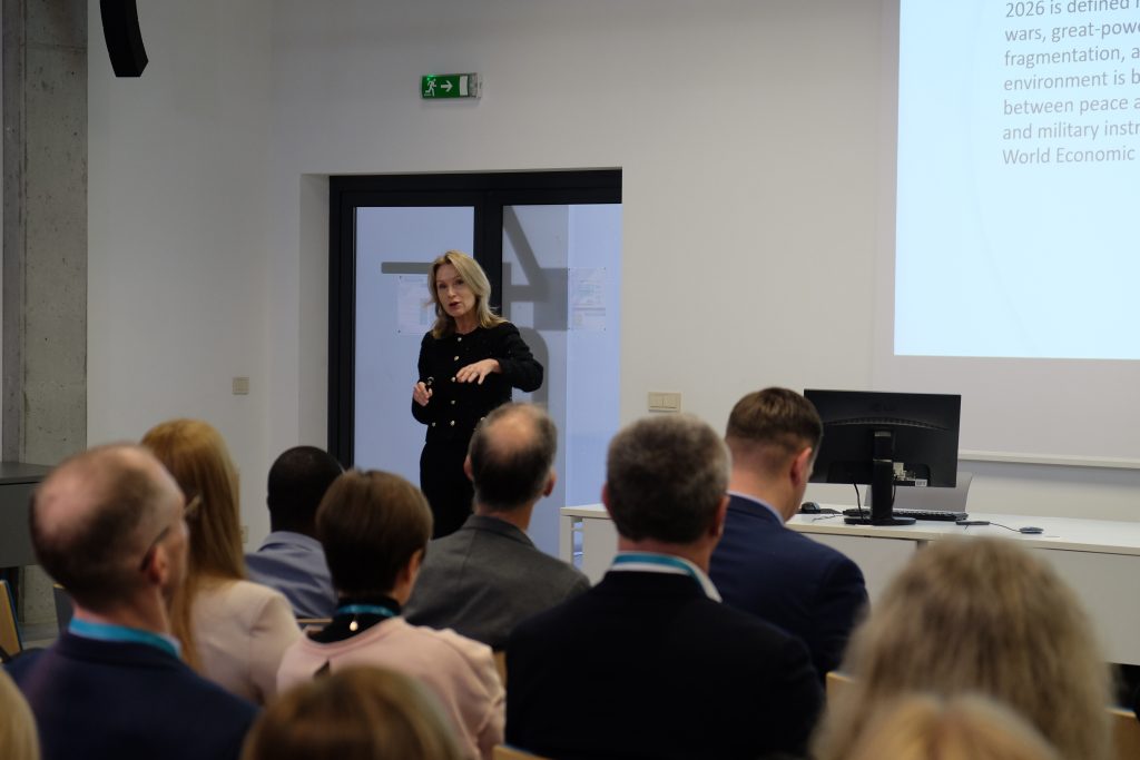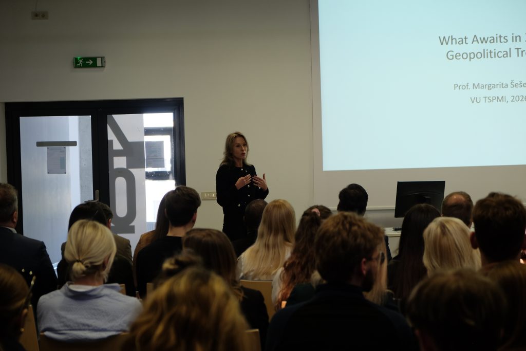 Geopolitinių iššūkių kontekstą nubrėžusi Vilniaus universiteto (VU) TSPMI profesorė dr. Margarita Šešelgytė pabrėžė, kad 2026-ieji žymi galutinį perėjimą į daugiapolį pasaulį, kuriame galia matuojama ne tik ginklais, bet ir technologiniu suverenitetu bei duomenų kontrole. Remdamasi „vertybinio realizmo“ koncepcija, profesorė akcentavo, kad mažoms valstybėms tarptautinė teisė ir regioninė vienybė yra egzistencinė būtinybė.