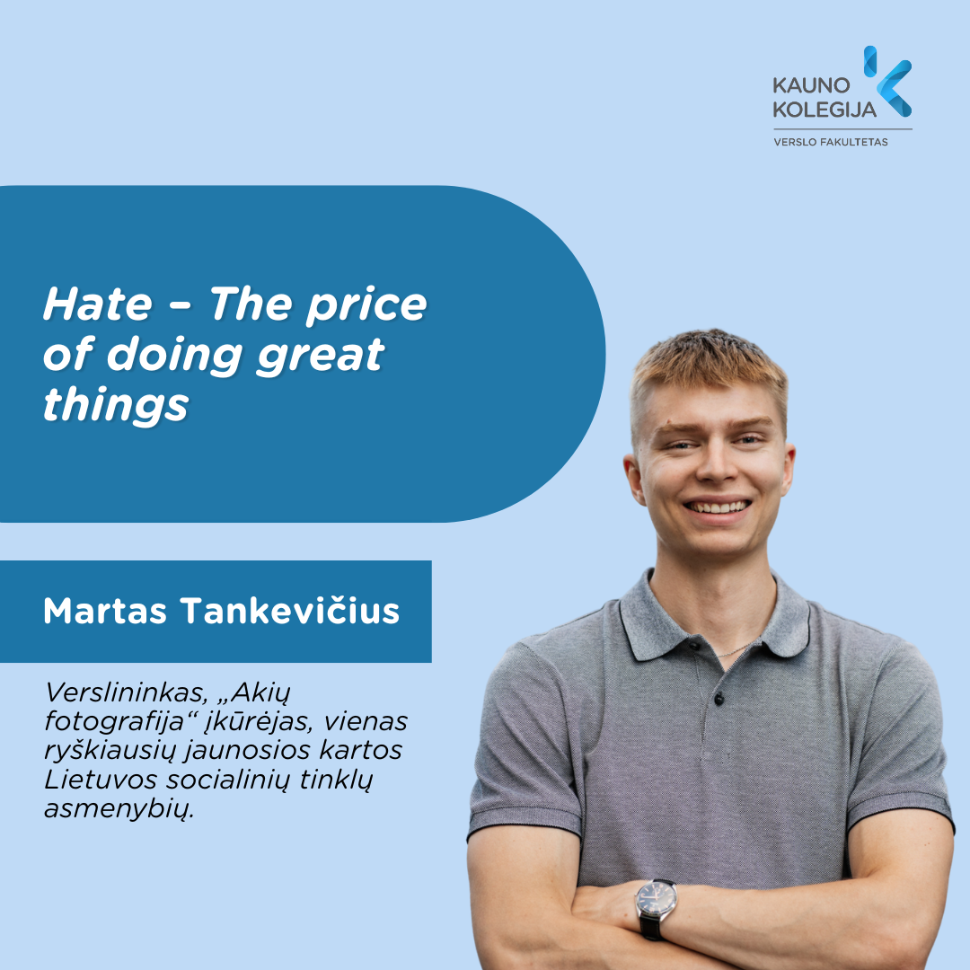 Konferencijos plenarinę sesiją pradės patyrę verslo vizionieriai, kurių asmeninė patirtis ir pasiekimai įkvėps būsimuosius specialistus nebijoti užsibrėžti ambicingų tikslų. Vienas iš pranešėjų – verslininkas, „Akių fotografijos“ įkūrėjas Martas Tankevičius, kurio praėjusių metų pasirodymas Verslo fakulteto organizuojamoje konferencijoje sulaukė išskirtinio dėmesio ir viršijo 80 tūkstančių peržiūrų skaitmeninėse platformose. Šiais metais pranešime „Hate – The price of doing great things“ jis analizuos sėkmės kainą bei psichologinį atsparumą, būtiną siekiant ambicingų tikslų ir realizuojant kūrybinį potencialą.