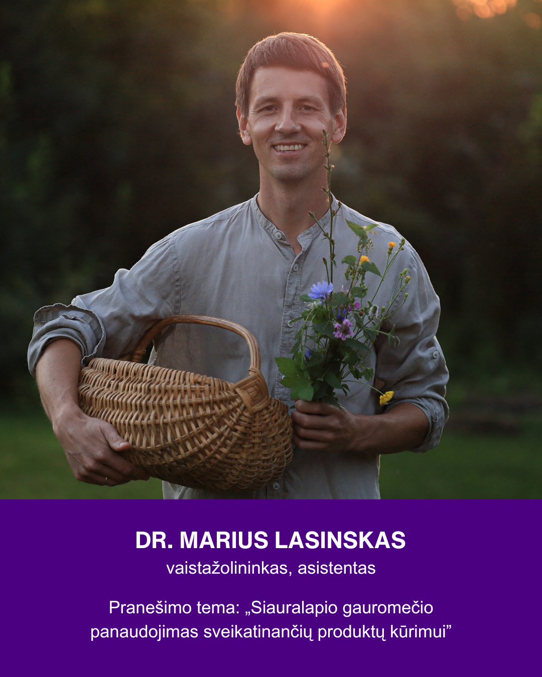 Vienas iš būsimų konferencijos pranešėjų – vaistažolininkas, asistentas dr. Marius Lasinskas iš Vytauto Didžiojo universiteto Žemės ūkio akademijos Agronomijos fakulteto Augalų biologijos ir maisto mokslų katedros. Jo pranešimo tema – siauralapio gauromečio panaudojimas sveikatinančių produktų kūrimui.
