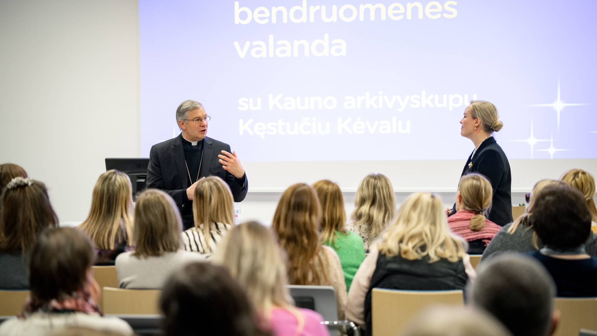 „Turime tapti dovana kitiems – tai yra tikroji Kalėdų prasmė“, – tokiais Kauno arkivyskupo Kęstučio Kėvalo žodžiais buvo pradėta adventinė Kauno kolegijos bendruomenės valanda.
