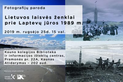 2019 m. rugsėjo 25 d. (trečiadienį) 15.00 val. Kauno kolegijos Bibliotekoje ir informacijos išteklių centre (Pramonės pr. 22A, (II aukštas), Kaune) vyks fotografijų parodos „Lietuvos laisvės ženklai prie Laptevų jūros 1989 m.“ atidarymas.