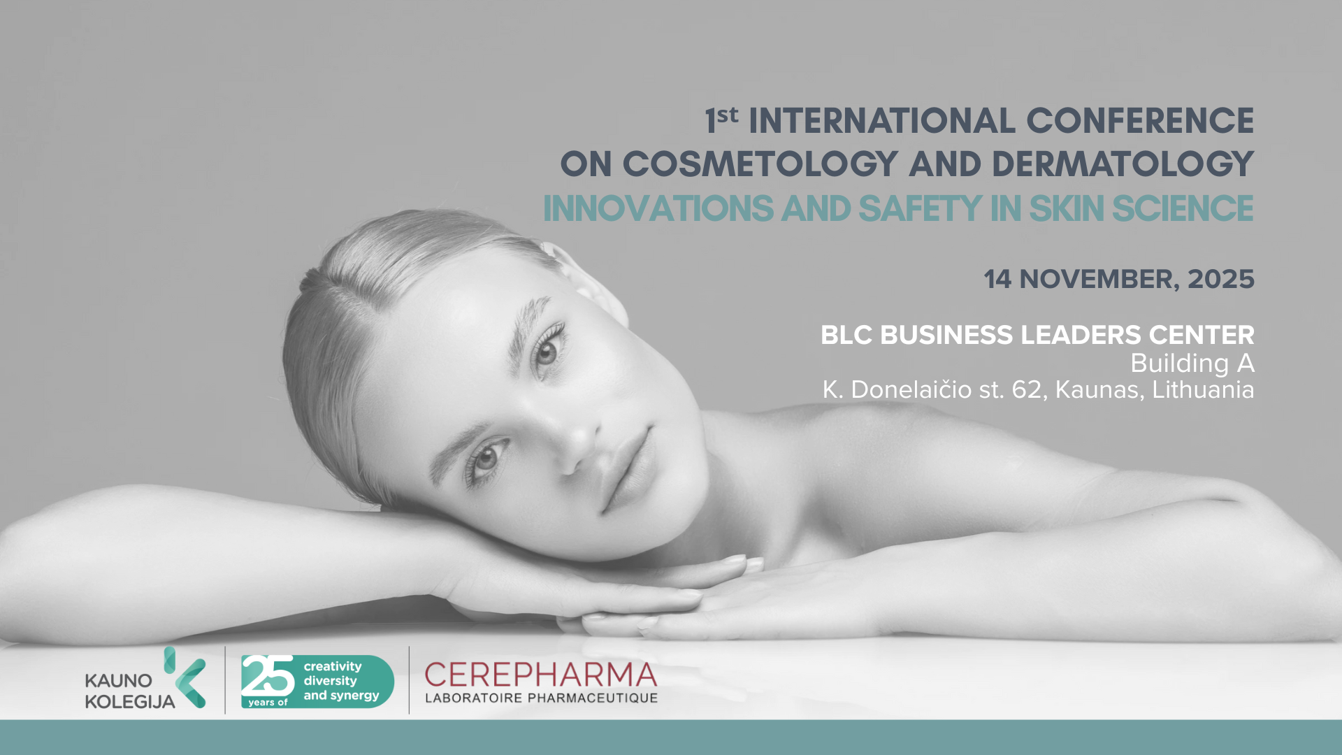 Kviečiame į pirmąją tarptautinę kosmetologijos ir dermatologijos konferenciją „Innovations and Safety in Skin Science“. Konferencija skirta kosmetologams, dermatovenerologams ir kitiems medicinos srities specialistams, siekiantiems gilinti žinias apie naujausius mokslinius tyrimus, pažangias odos priežiūros technologijas bei inovatyvius sprendimus estetinės medicinos ir kosmetologijos srityse.