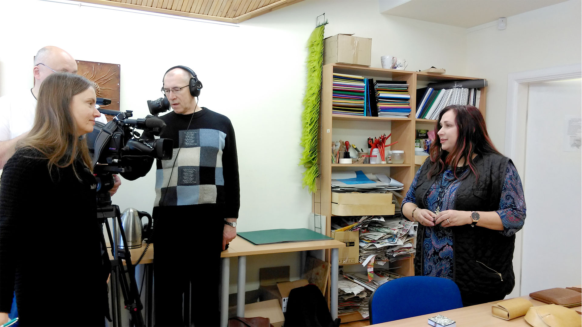 Kauno kolegijos Justino Vienožinskio menų fakultetą aplankė laukti svečiai – televizijos programos „LRT kultūra“ laidos „Atspindžiai. Paveldo kolekcija“ kūrybinė grupė: operatoriai Vytautas Juknys, Rimantas Miškelevičius, garso režisierius Česlovas Vaitkunskas ir žurnalistė Ingrida Daraškevičiūtė.