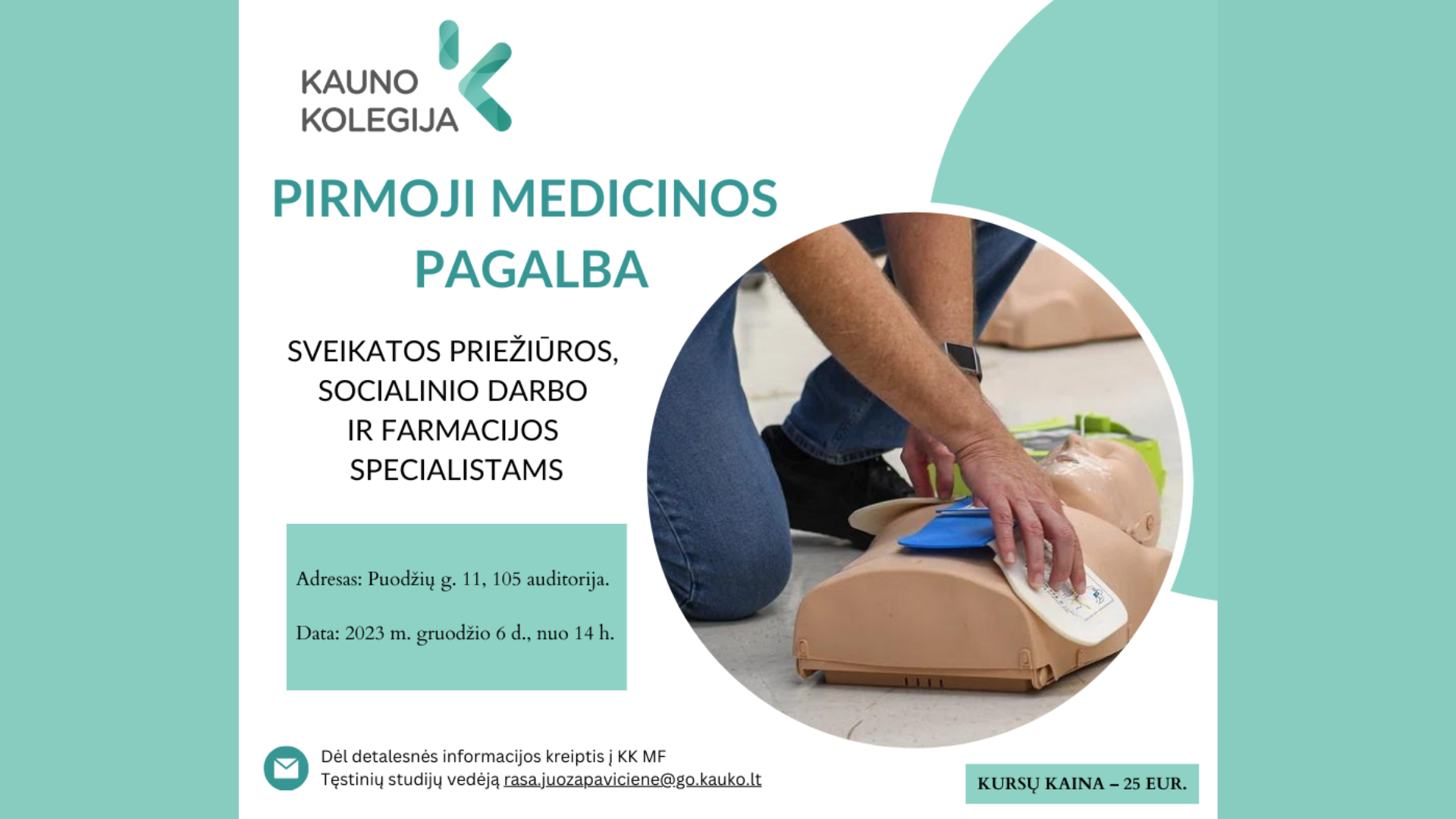Mokėjimo paskirtis: už Pirmos pagalbos kursus 25 eurai.