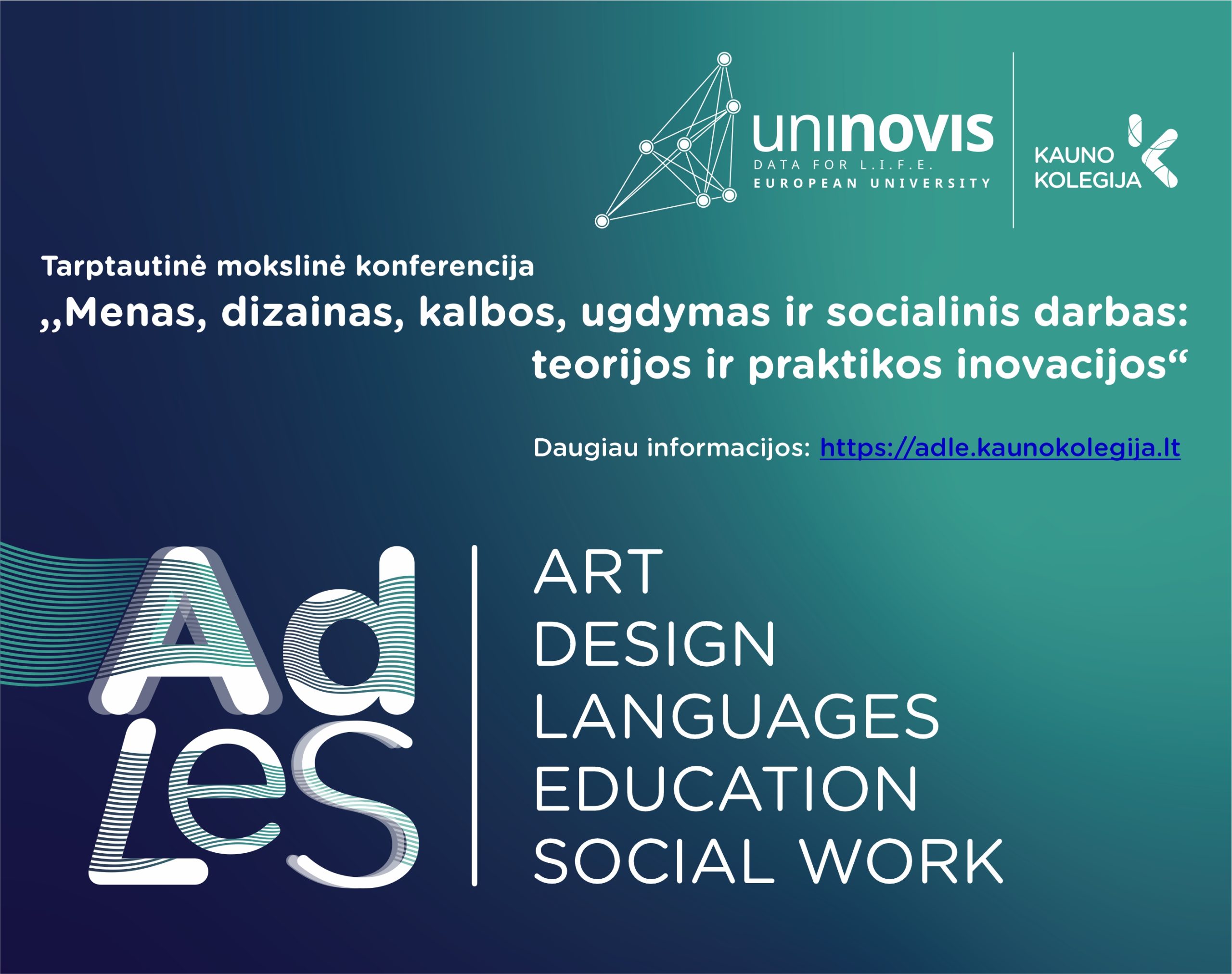 Kauno kolegijos Menų ir ugdymo fakultetas kviečia dalyvauti tarptautinėje mokslinėje konferencijoje ADLES Powered by UNINOVIS 2025: Menas, dizainas, kalbos, ugdymas ir socialinis darbas: teorijos ir praktikos inovacijos.
