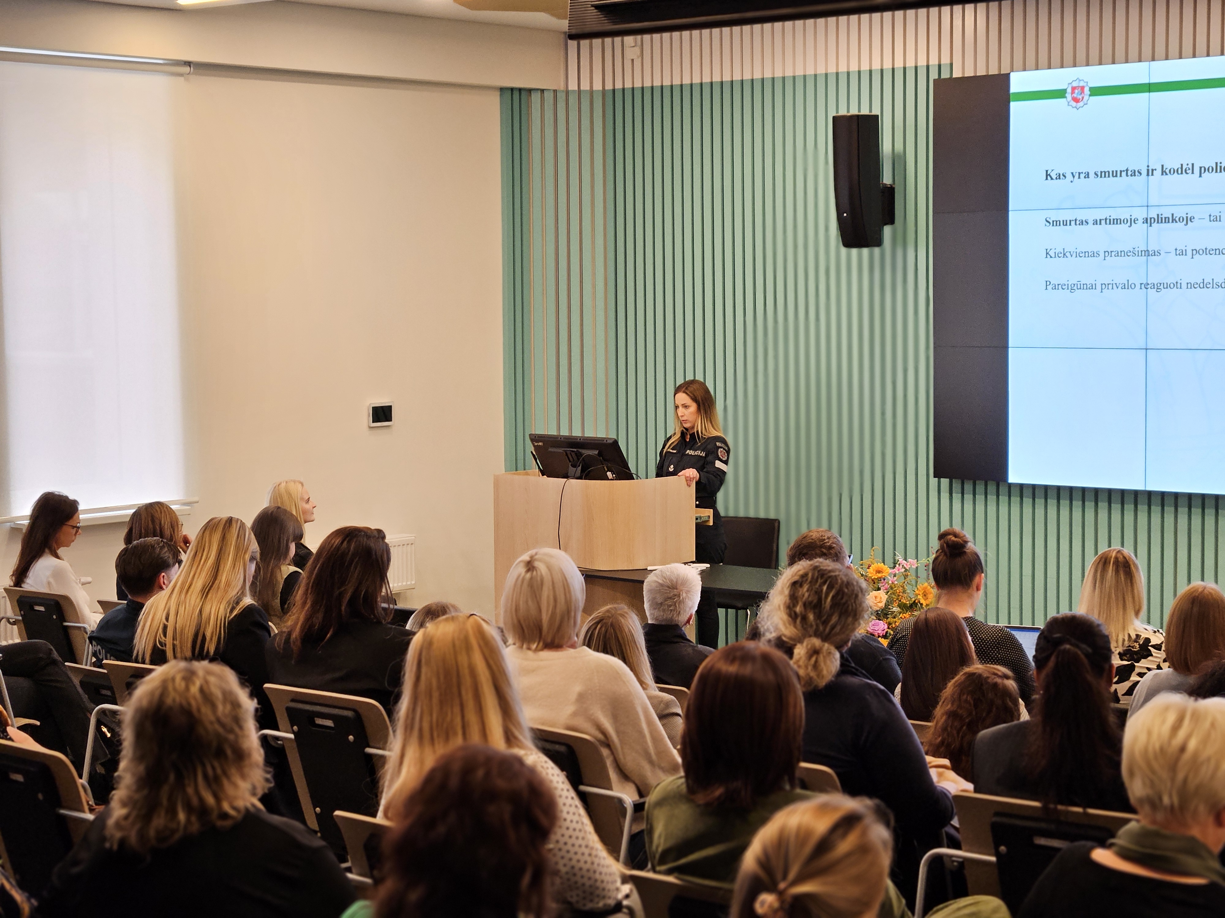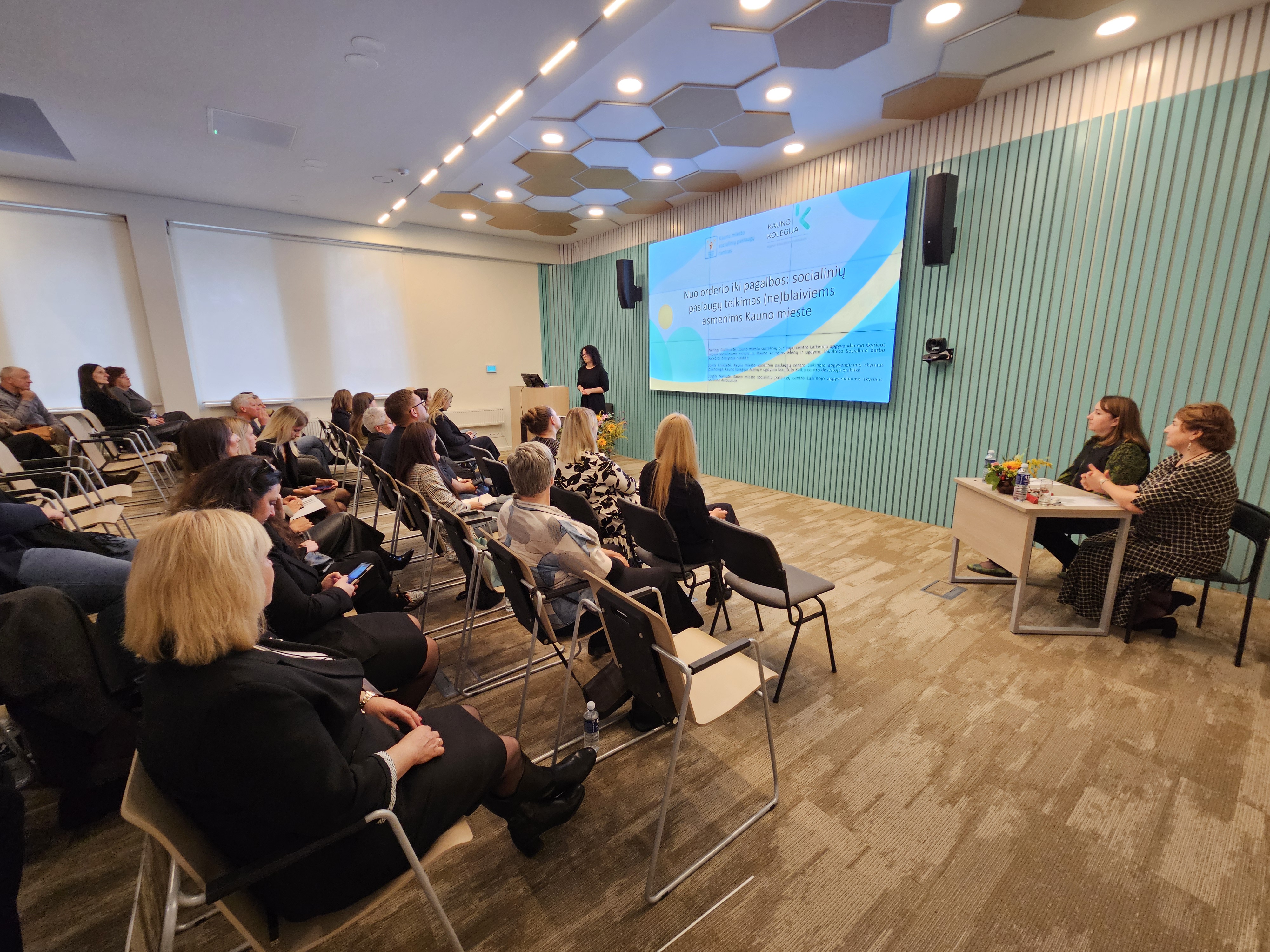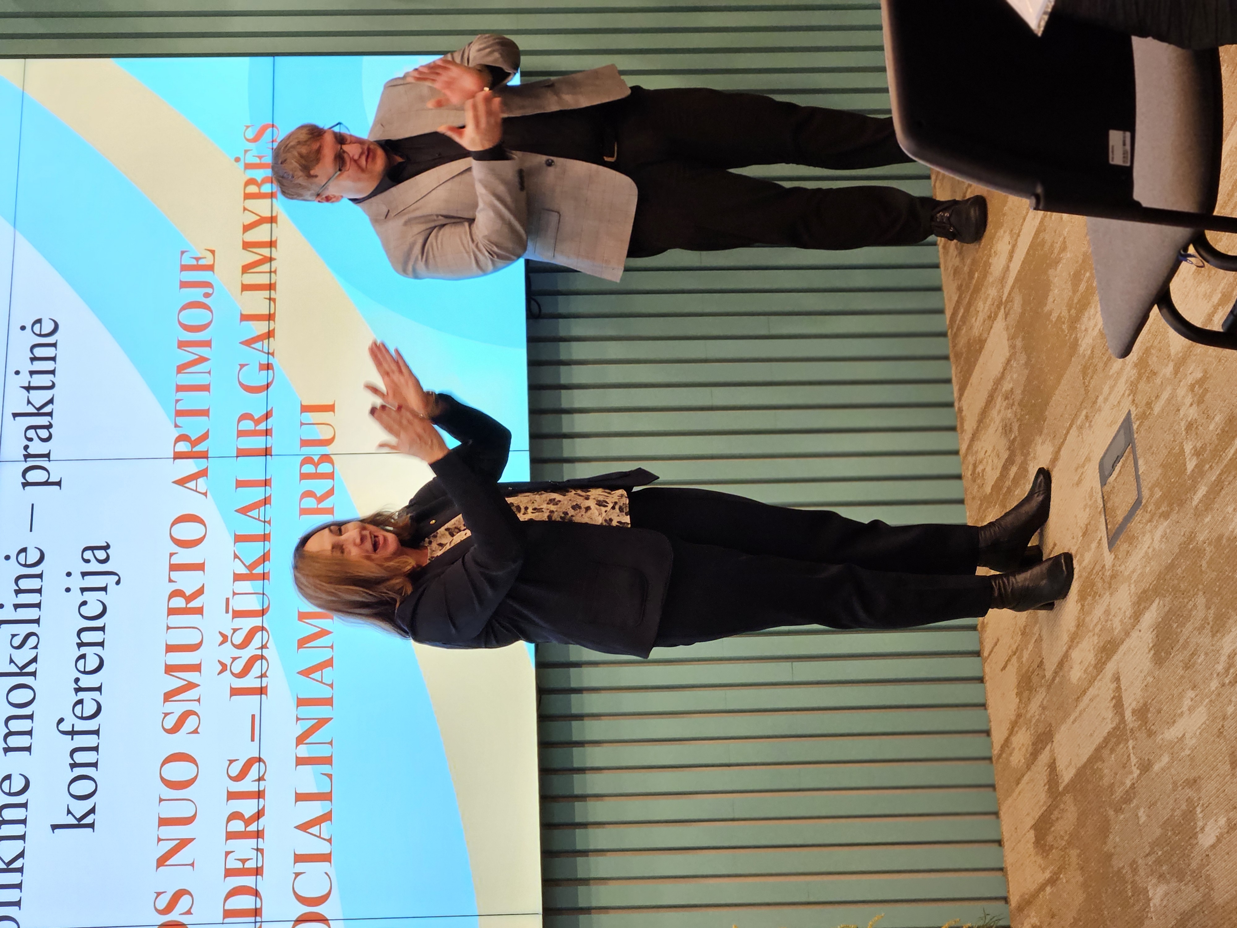 Šiandien įvyko Kauno kolegijos Menų ir ugdymo fakulteto Socialinio darbo katedros ir Kauno miesto socialinių paslaugų centro organizuota respublikinė mokslinė–praktinė konferencija „Apsaugos nuo smurto artimoje aplinkoje orderis – iššūkiai ir galimybės socialiniam darbui“, subūrusi socialinio darbo specialistus, praktikų ir akademinės bendruomenės atstovus iš įvairių Lietuvos miestų. Konferenciją moderavo Kauno miesto socialinių paslaugų centro direktorė ir Lietuvos socialinio darbo tarybos pirmininkė dr. Roberta Motiečienė bei Kauno kolegijos Menų ir ugdymo fakulteto Socialinio darbo katedros vedėja Virginija Kondratavičienė.