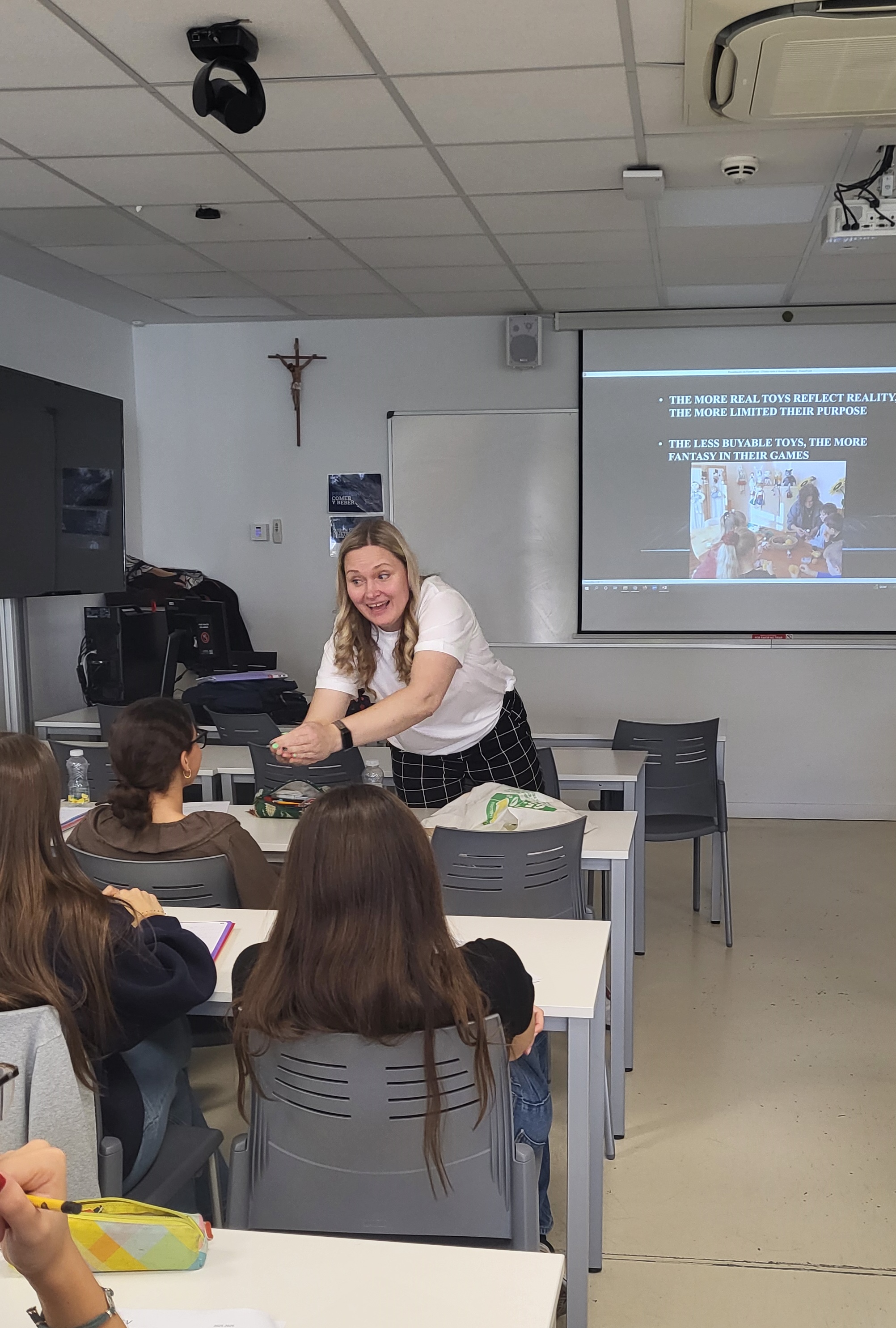 Aktyvų Ikimokyklinio ir pradinio ugdymo studentų įsitraukimą skatino praktiniai užsiėmimai, kuriuose buvo taikomi kalbos ugdymo metodai pasitelkiant dramos, muzikos ir žaidybinius elementus. Šiltas Francisco de Vitoria universiteto bendruomenės priėmimas, modernios mokymosi erdvės bei kūrybiška atmosfera skatino atvirą bendradarbiavimą ir patirčių dalijimąsi.