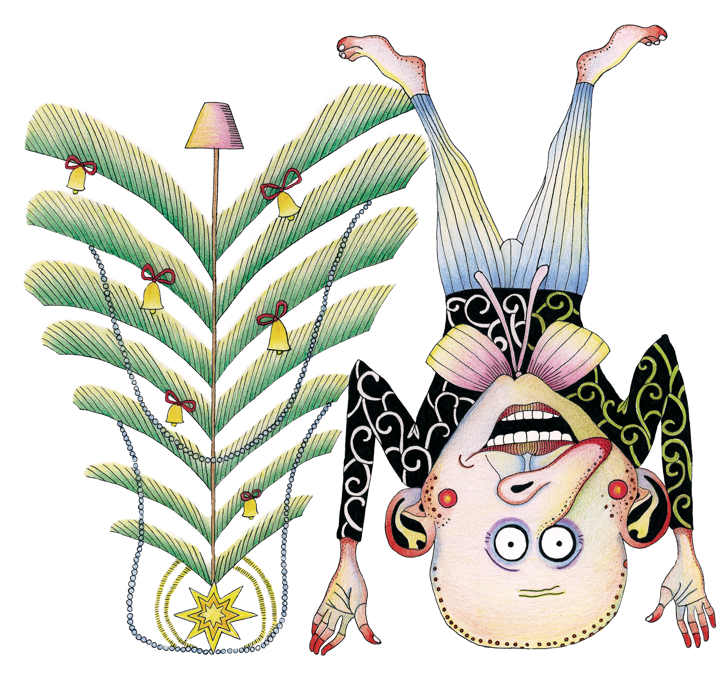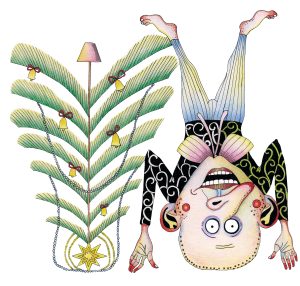 Ekspozicijoje, greta iliustracijų, menininkė pristato ir šmaikščius kalėdinius atvirukus.