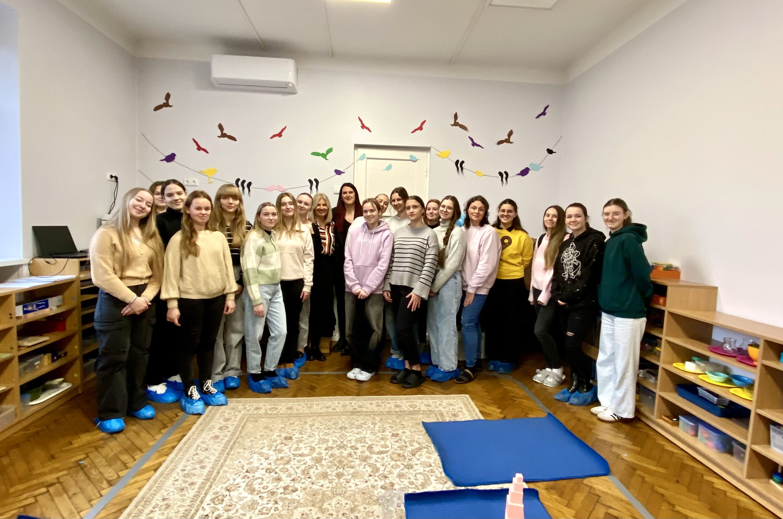 Kauno kolegijos Menų ir ugdymo fakulteto Pedagogikos katedros Ikimokyklinio ir priešmokyklinio ugdymo studijų programos studentės 2025 m. lapkričio 17 dieną, drauge su dėstytoja Vaida Valalyte, lankėsi Kauno lopšelyje–darželyje „Klevelis“.