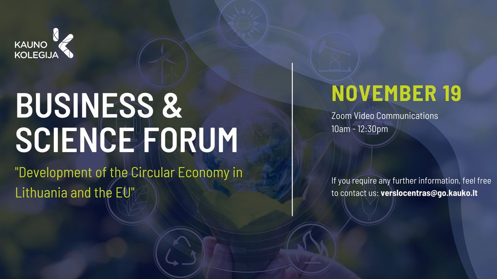 Lapkričio 19 d., penktadienį, nuo 10 val. dėmesys šiai temai bus skiriamas virtualaus forumo „Žiedinės ekonomikos plėtra Lietuvoje ir ES“ metu. Verslo fakulteto Verslo centro organizuojamo forumo tikslas – šviesti ir ugdyti akademinę bendruomenę bei verslo sektoriaus atstovus, apžvelgiant aktualią informaciją ir mokslinių tyrimų rezultatus žiedinės ekonomikos įveiklinimo ir poveikio verslui kontekste.