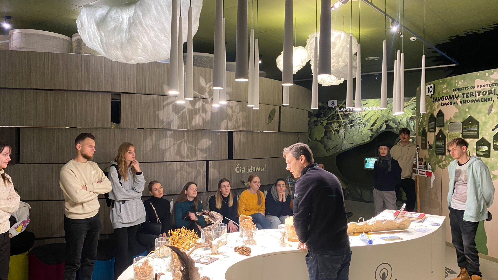 Tuo tarpu Nacionalinio saugomų teritorijų lankytojų centre pasitikęs edukatorius ne tik pristatė ekspoziciją ir centro veiklas, tačiau pakvietė visus patiems patyrinėti muziejaus ekspoziciją su virtualiu gidu, naudojantis išmaniųjų technologijų pagalba.