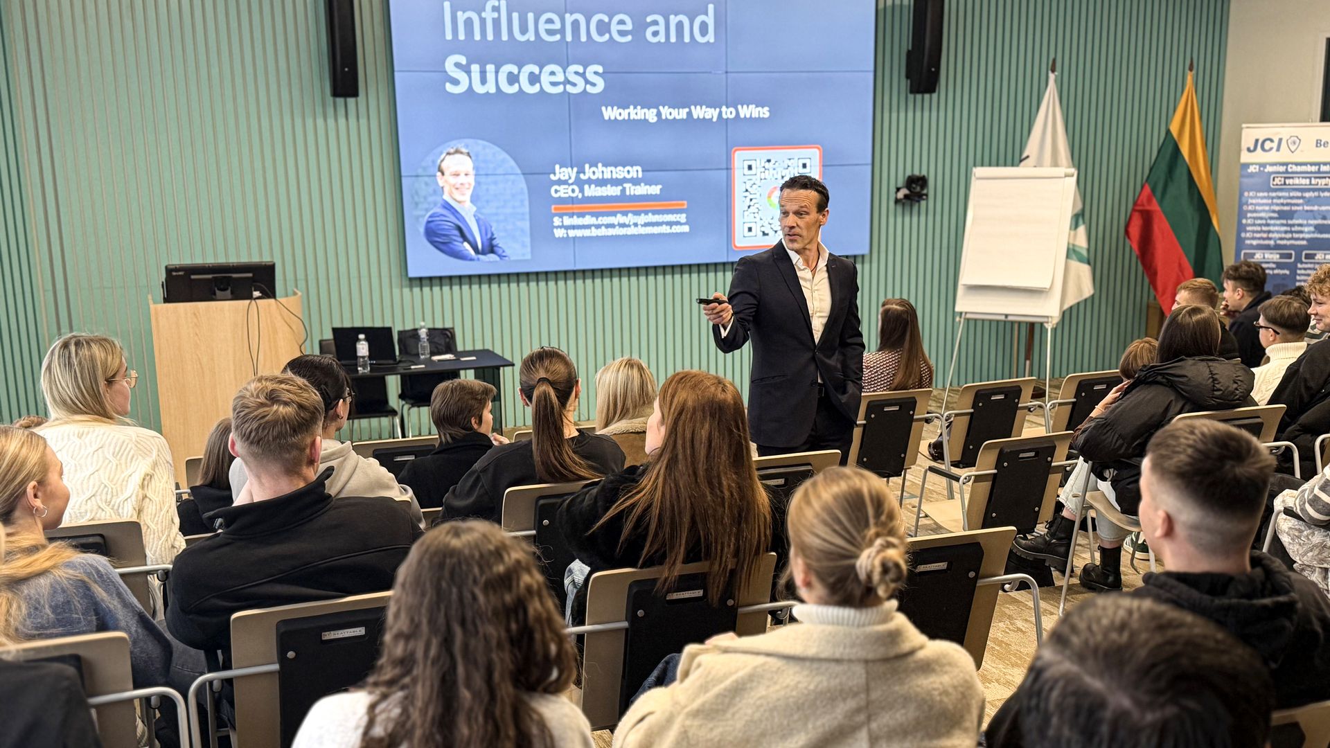 Jay Johnson vizitas Kauno kolegijoje tapo proga pasisemti naujų žinių ir priminimu apie platesnę lyderystės misiją. Kaip aktyvus Junior Chamber International (JCI) narys, Johnson nuosekliai prisideda prie jaunų lyderių ugdymo visame pasaulyje.