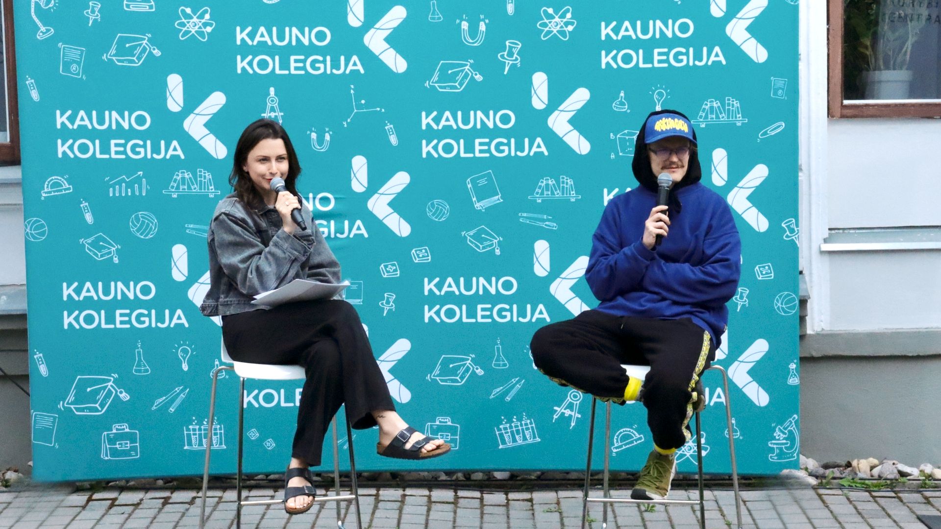 Renginio svečias Pijus Čeikauskas, menininkas, geriau žinomas kaip Pidžinas, pasakojo apie savo kūrybos kelią ir tai, kas jį įkvepia. Pijus – Vilniaus dailės akademijos Animacijos ir fotografijos bakalauras ir Grafikos magistras. 2022 m. pelnė Sidabrinę gervę už trumpametražį animacinį filmą „MORA MORA“. Jo kūryba – gatvės menas, sarkazmas, ironija, ryškios spalvos ir komikso stilius, kuris atgyja miesto sienose. Menininkas siekia, kad jo darbai pasiektų ne tik galerijas, bet ir viešąsias erdves, kur žmonės gali patirti meną kasdien.